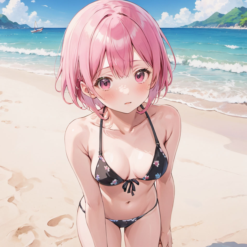 | ■なので名も無きオリJKのまま水着に(笑)。花柄ビキニがよく似合う |