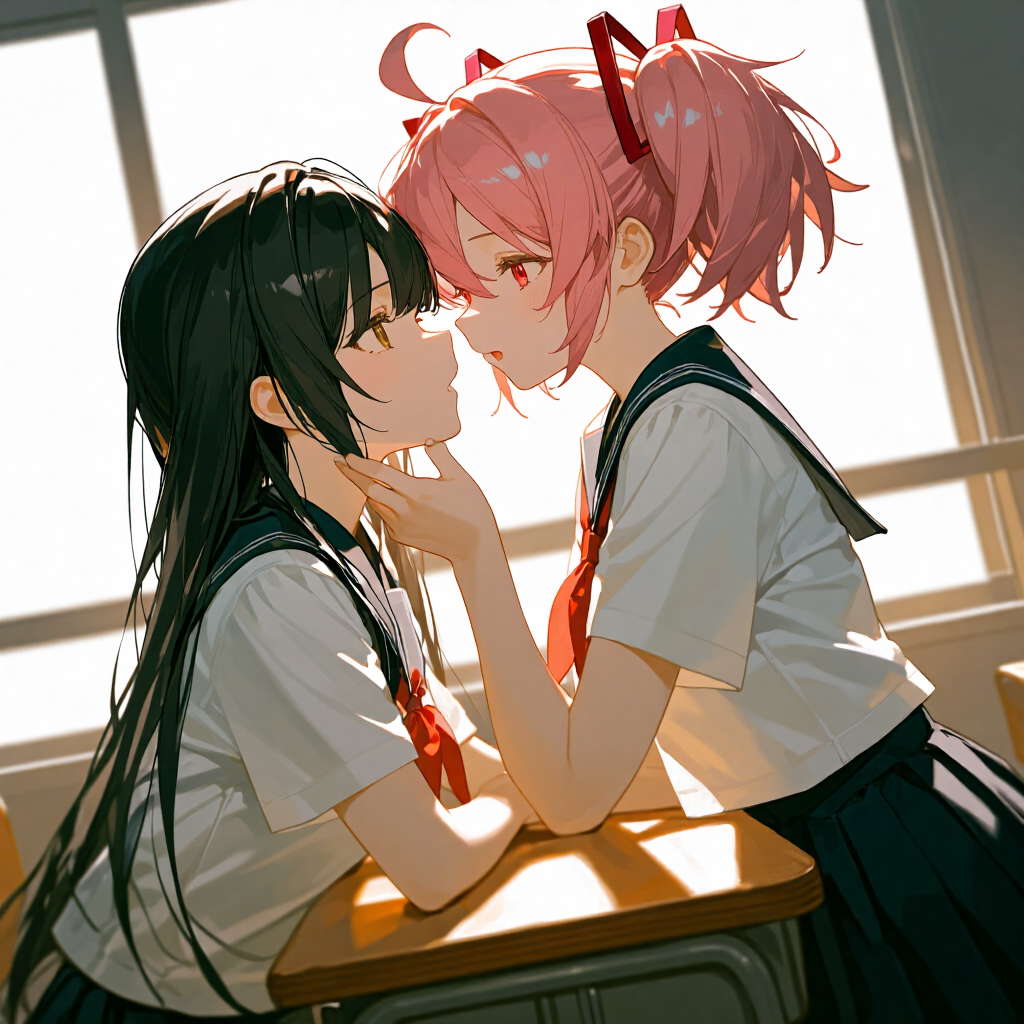 | ■まどマギのまどほむ。敢えて別のモデルで作成。 |